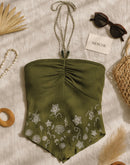 COZY LIFE OLIVE BEADED HALTERNECK TOP