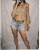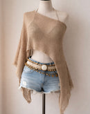 HISTORY REPEATS KNITTED OFF-SHOULDER PONCHO TOP
