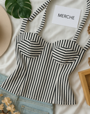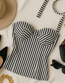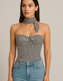 HOT SEAT STRIPED BANDEAU TOP WITH PENCIL SCARF