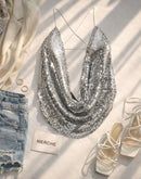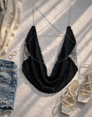 SAVAGE MOVE SEQUIN CHAIN COWL BACKLESS TOP