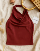 WHISPER NOTES BACKLESS COWL LUXE SATIN TOP