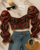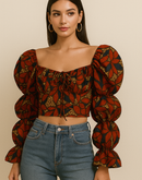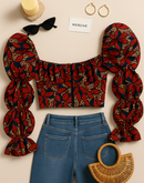 HAIL QUEEN STATEMENT SLEEVE FLORAL TOP