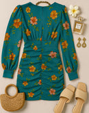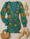 VACAY DAME FLORAL RUCHED LUXE DRESS