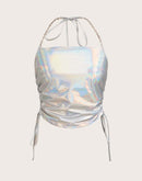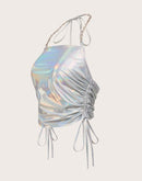 BORN TO SHINE LEATHER STYLE HALTERNECK TOP