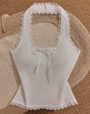 COMPLICATED BABY PADDED WHITE HALTERNECK TOP