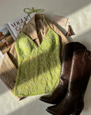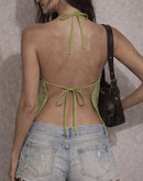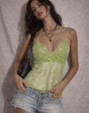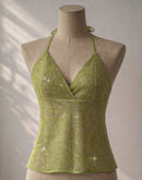 FLIP PHONE NEEDED SEQUIN EMBELLISHED GREEN HALTERNECK TOP
