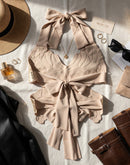MOODY ANGEL SHIMMER TIE-BACK HALTERNECK TOP