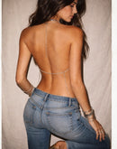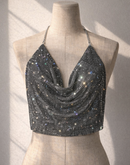 BEAT DROP METAL GREY RHINESTONE HALTERNECK CHAIN TOP