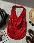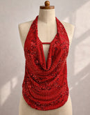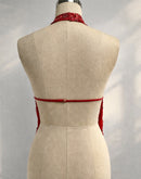 COSMIC DANCE EMBROIDERED COWL RED HALTERNECK TOP