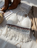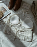 COULD BE THE ONE BEADED CROCHET WHITE HALTERNECK TOP