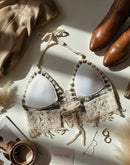 FORTUNE COOKIE CROCHET PADDED OLIVE FRINGE TOP