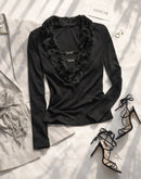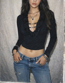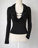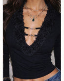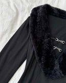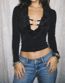 HEAVY SLAY LUXE FAUX FUR CHAIN DETAIL BLACK TOP