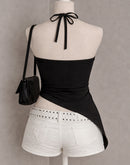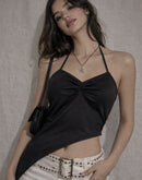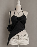 ITALIAN LOVER ASYMMETRICAL BLACK HALTERNECK TOP