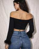 LIFE OF THE PARTY FUR DETAIL OFF-SHOULDER TOP