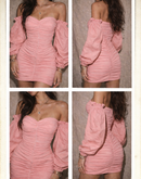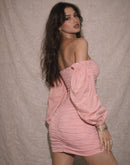 PAINT THE TOWN PADDED PINK RUCHED SLASH NECK DRESS