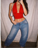 PAST LIFE DRAPE LUXE RED HALTERNECK TOP