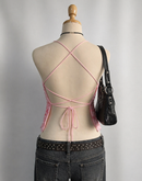 SHOTS ON ME EMBROIDERED BALLET PINK CROSSBACK TOP