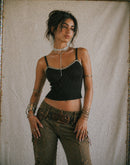 SICILY NIGHT RHINESTONE EMBELLISHED BLACK TOP