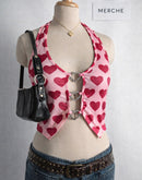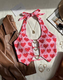 WATCH ME WIN HEART EMBELLISHED CUT-OUT HALTERNECK TOP