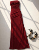 BLOOD MOON LUXE RED STRAPLESS MAXI DRESS