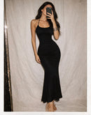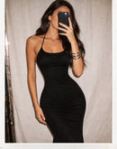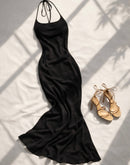 SURRENDER TO ME LUXE BLACK HALTERNECK DRESS