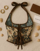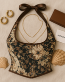 SCANDAL ERA JACQUARD CORSETRY HALTERNECK TOP