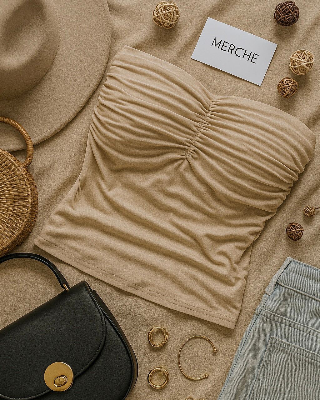 HEAVENLY HOUR BEIGE PADDED BANDEAU TOP