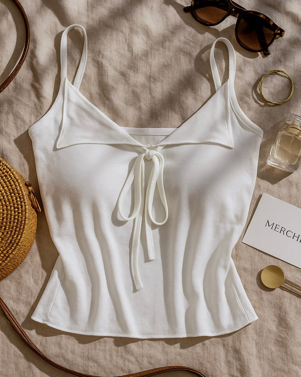 BOMBSHELL IN WHITE TIE-BACK TOP