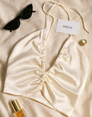 DANCE MARATHON SATIN RUCHED HALTERNECK TOP