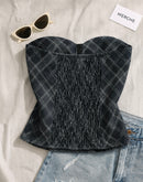 DEVIL WEARS NADA PLAID PADDED BUSTIER TOP