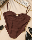 ENDLESS DRAMA FAUX DENIM DEEP BROWN CAMI TOP