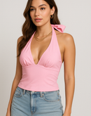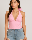 LOVE LANGUAGE PINK HALTERNECK TOP