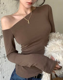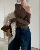 MERCHE BASIC BROWN SLASH NECK TOP