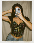 MORE MASCARA EMBROIDERED BLACK PADDED TOP