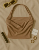OCEAN VIEW BEIGE COWL HALTERNECK TOP