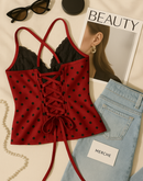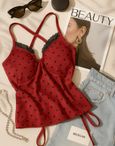 PALM SPRINGS PADDED CROSSBACK RED POLKA TOP