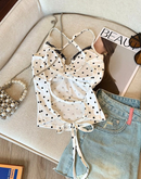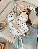 PALM SPRINGS PADDED CROSSBACK WHITE POLKA TOP