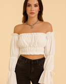 PILLOW TALK WHITE OFF-SHOULDER TOP