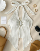 SANTORINI SWAY TEXTURED WHITE HALTERNECK TOP