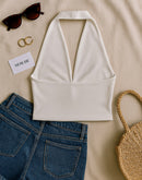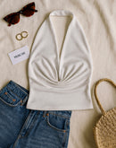 SLAY BELLE WHITE COWL HALTERNECK TOP