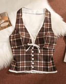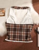 SUNDAY CHARM CHECKS HALTERNECK TOP