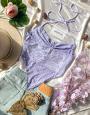 WILD BERRY LILAC EYELET HALTERNECK TOP