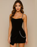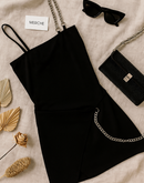 DRAMA DELIVERED CHAIN DETAIL BLACK DRESS