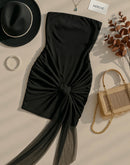 SIREN GIRL SASH DETAIL BLACK MINI DRESS