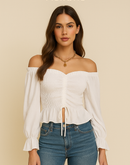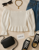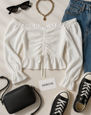 GLOBAL GIRL WHITE SMOCKED TOP