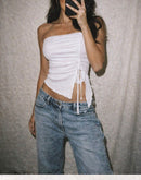 URBAN PRINCESS DRAWSTRING WHITE BANDEAU TOP