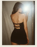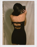 CASINO NIGHT BELT BACK BLACK BANDEAU DRESS