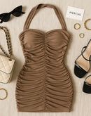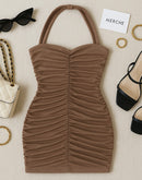 FIRE GIRL BROWN RUCHED HALTERNECK DRESS