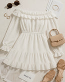 LOCKET OF LOVE WHITE SLASH NECK DRESS