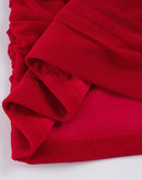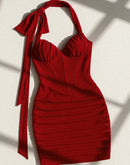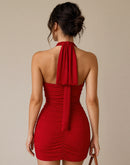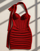 MOVIE STAR MESH DETAIL CORSETED RED HALTERNECK DRESS